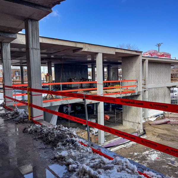 “StrapRail is tensioned between the building’s columns so the barrier is effectively just floating over the corrugated steel deck, without interfering with the concrete finishing work. It’s like magic!”
